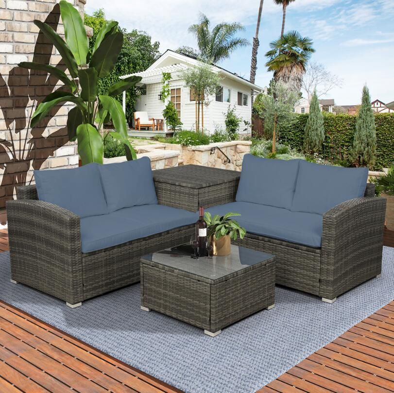 4 pcs في الهواء الطلق أسند pe الروطان الغصن الاقسام طقم كنب حديقة فناء أثاث مجموعة رمادي وسادة الهواء الطلق الأثاث 2021 من greatfurnishing 1 903 3ر س موبايل dhgate